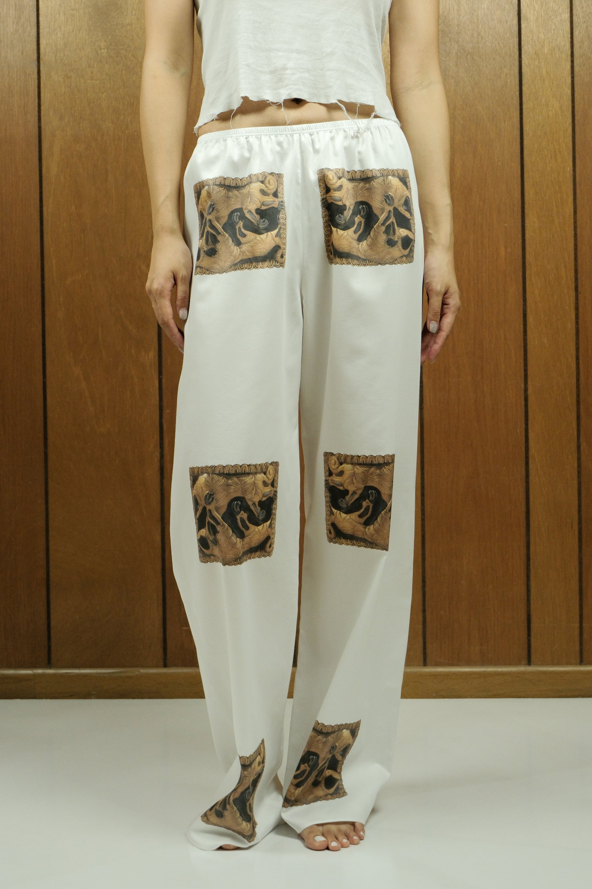 Discover the Iseul Pants in Gunnen, featuring a hand-drawn motif inspired by Scytho-Siberian art. Each piece is crafted with exceptional care and attention to detail. Their chic print pairs beautifully with a relaxed, flowing silhouette, making them perfect for occasions like wine tastings or farmers market visits.