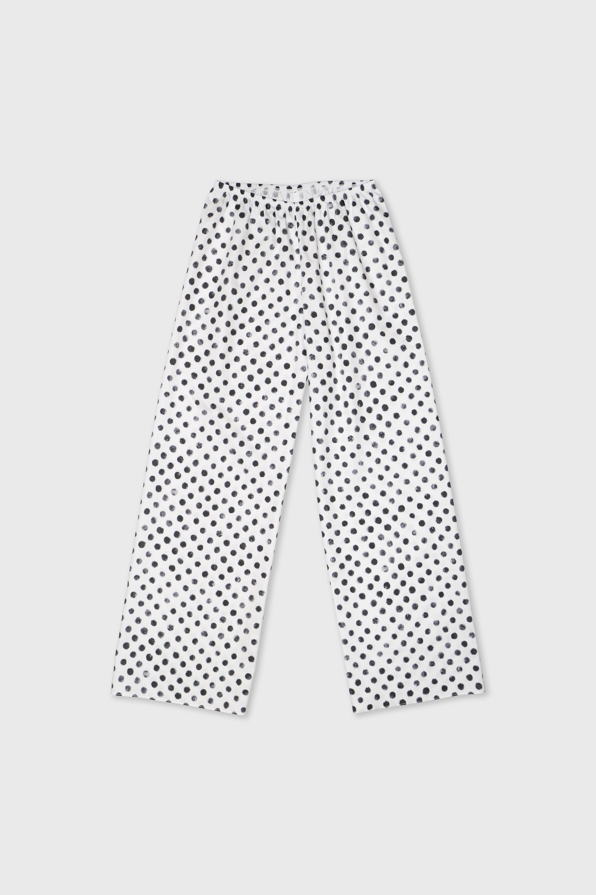Introducing our iconic Iseul Pants in Balter, our unique interpretation of the classic polka dot pattern, with each dot delicately hand-painted for the most polished and poetic expression—far from the generic black polka dot print seen everywhere. Their relaxed, flowing silhouette, combined with a refined feel, makes them ideal for an elegant Sunday outing or a cozy evening soiree.