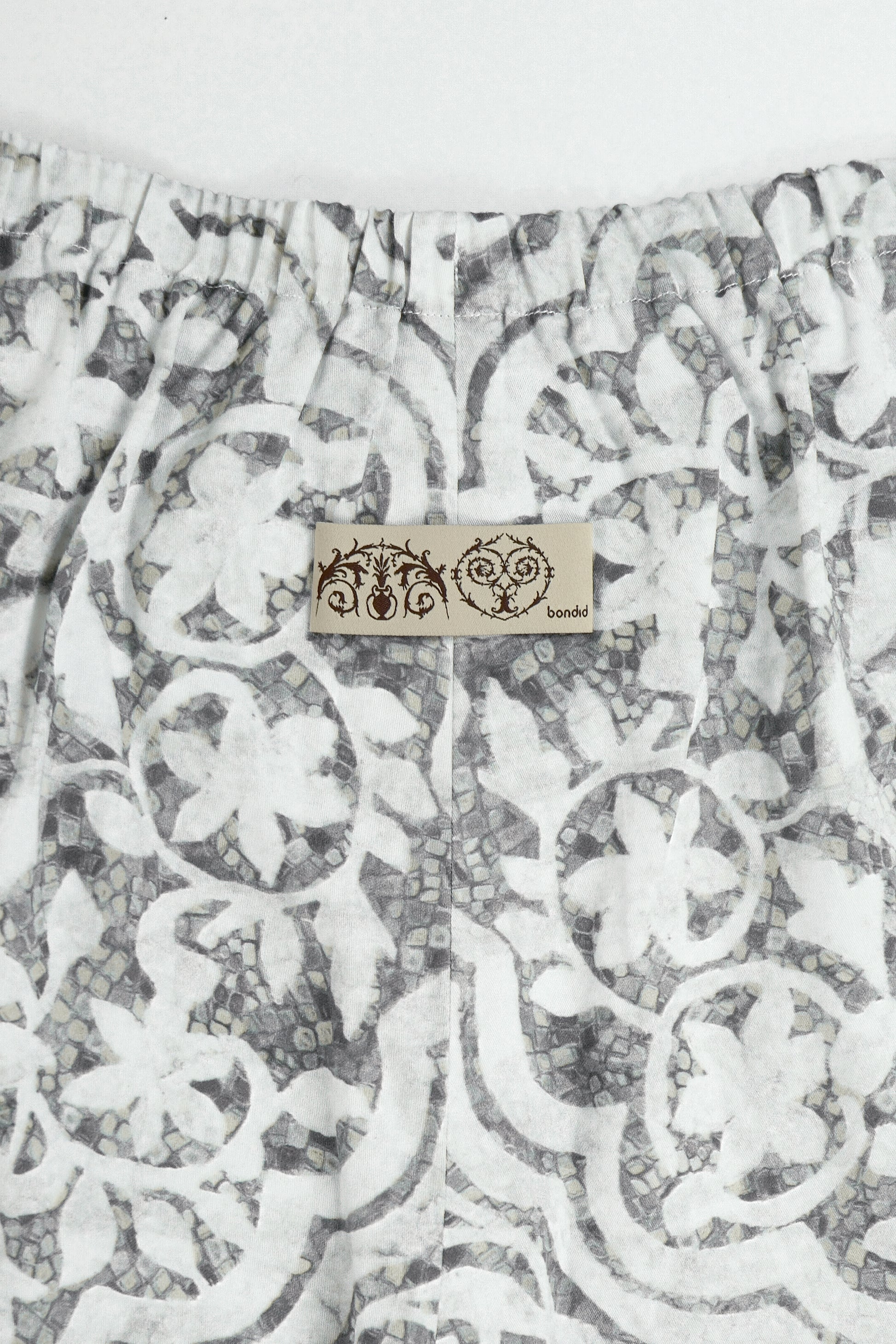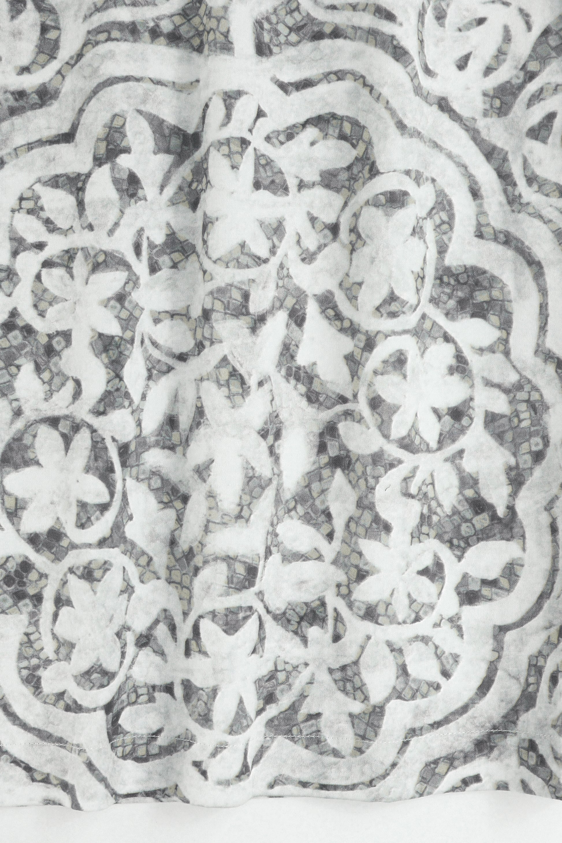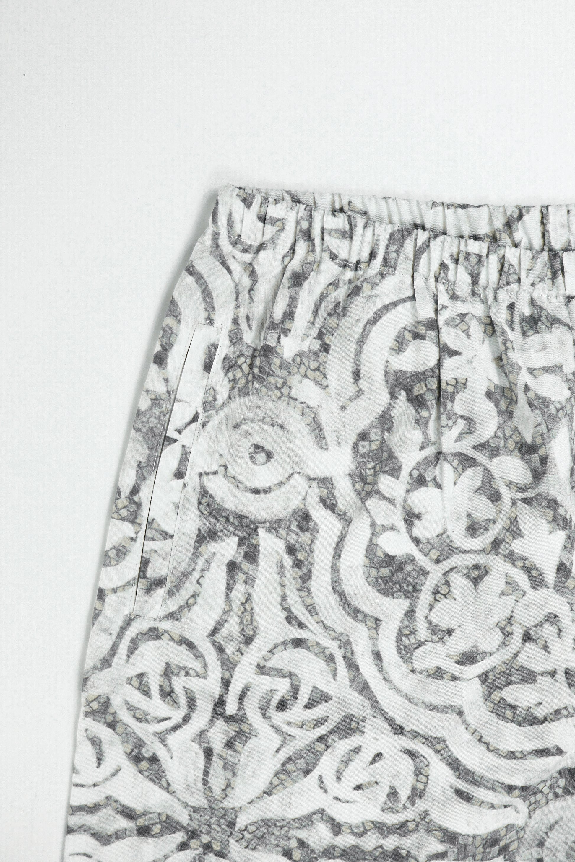 The poetic mosaic print was created to bring art into your closet. Each irregular piece of colored stone was illustrated by hand, using different lines and dots, shades of grey and cream, to give this mosaic print a richness and character that is subtle yet intricate.