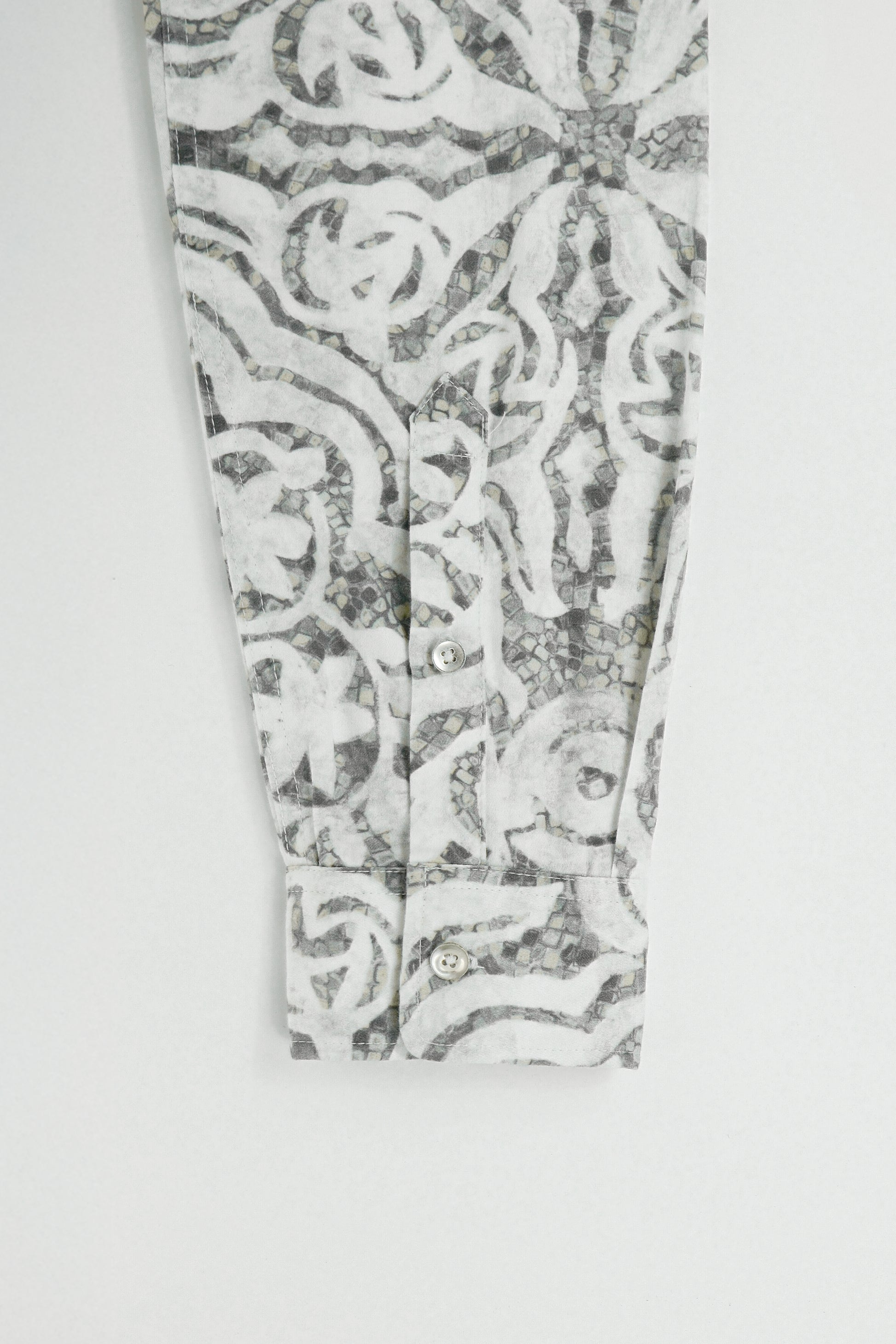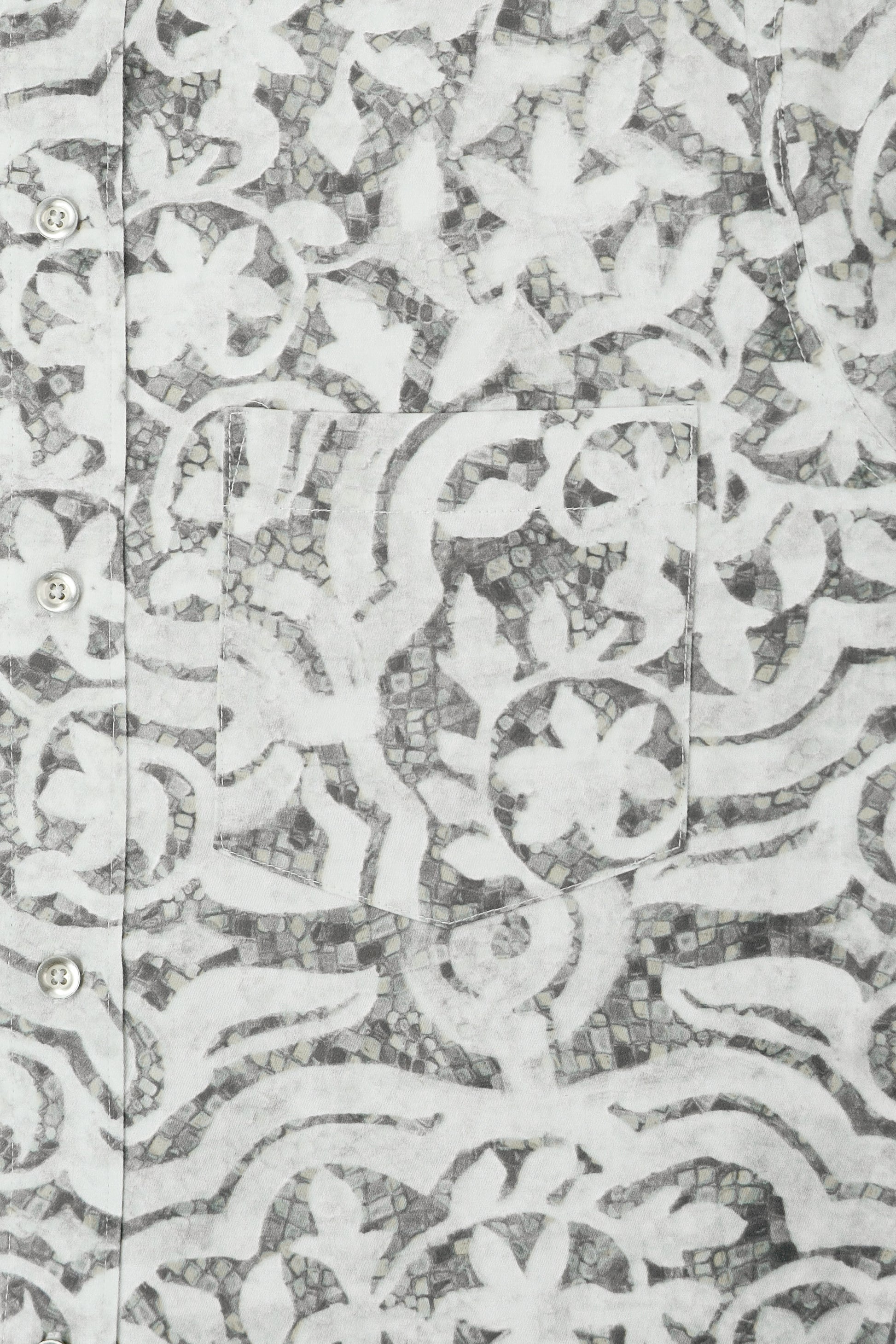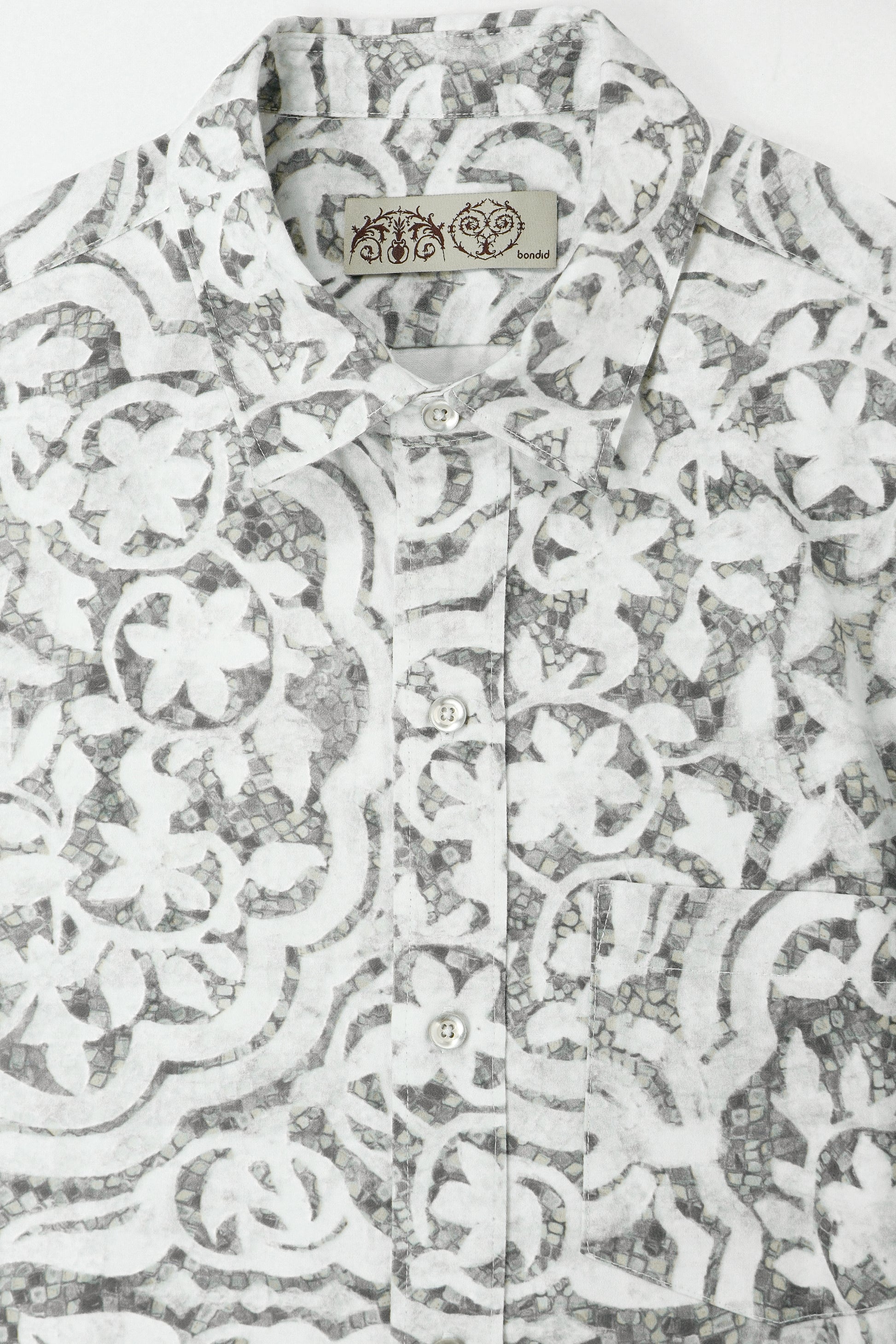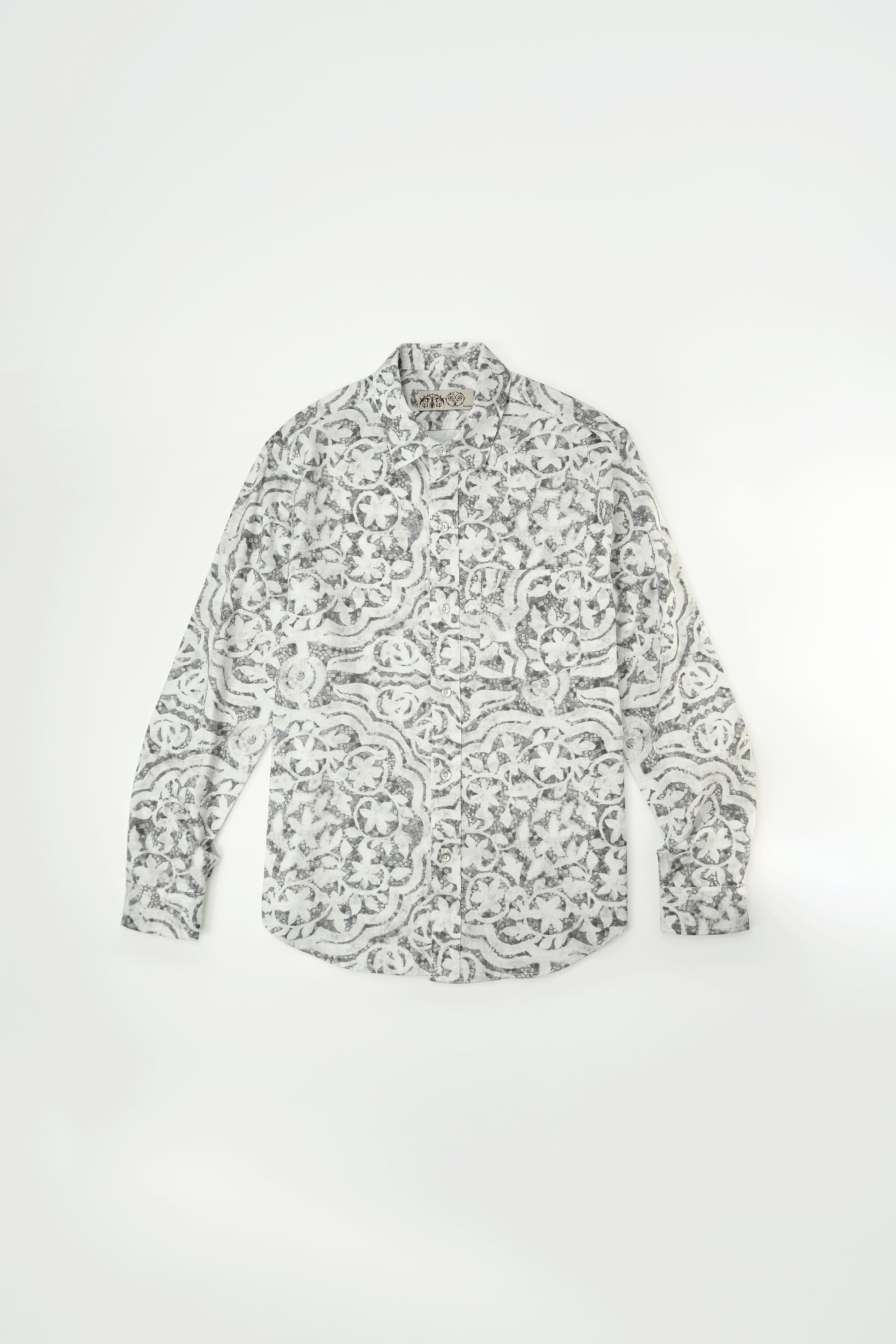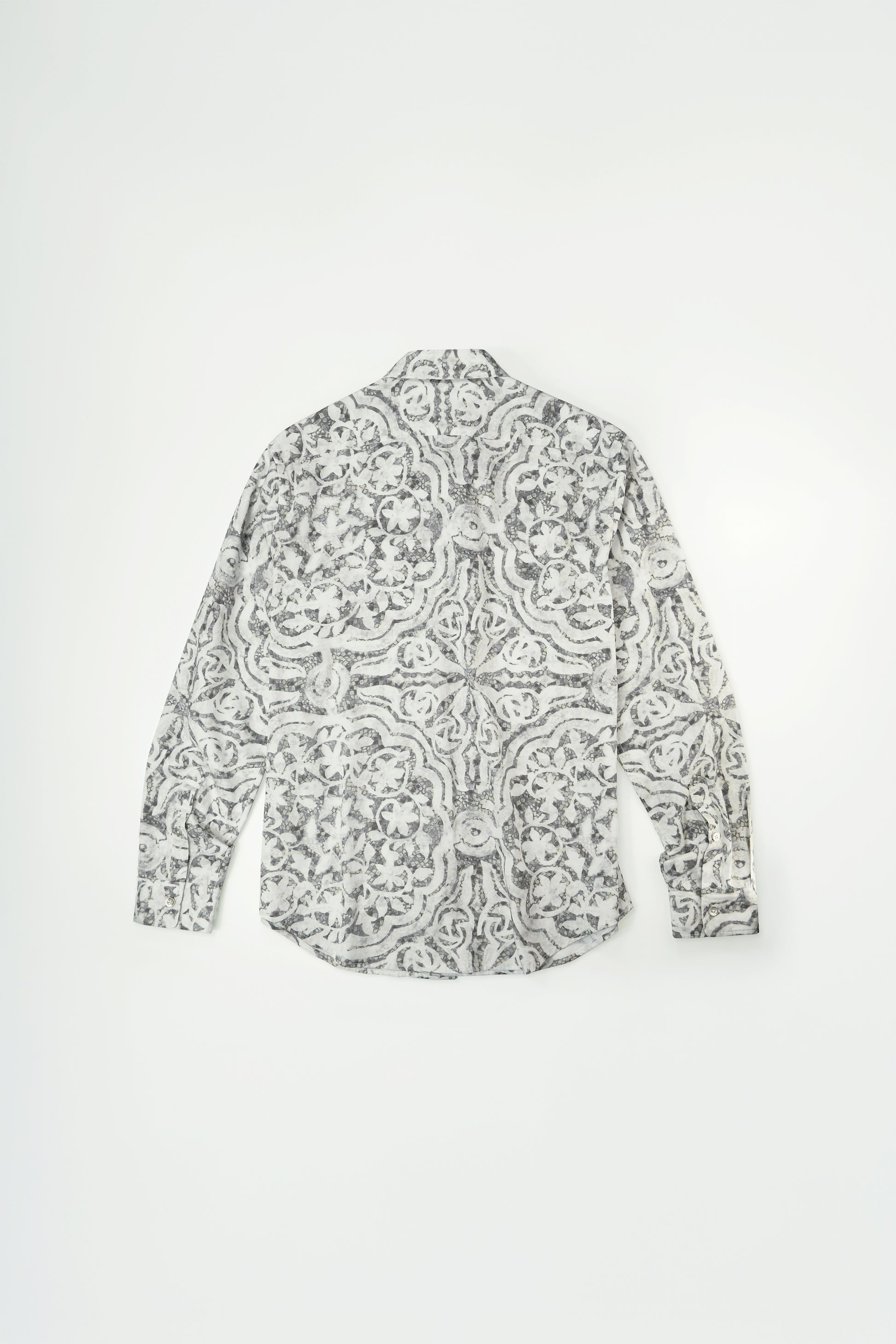 Experience our iconic 'glitter' print in a button down shirt. Versatile and striking, this wardrobe essential looks polished, whether you wear them to the office or lunch with friends. The silver toned metal buttons are handpicked in Japan, fabric was printed and shirt was made in Korea.