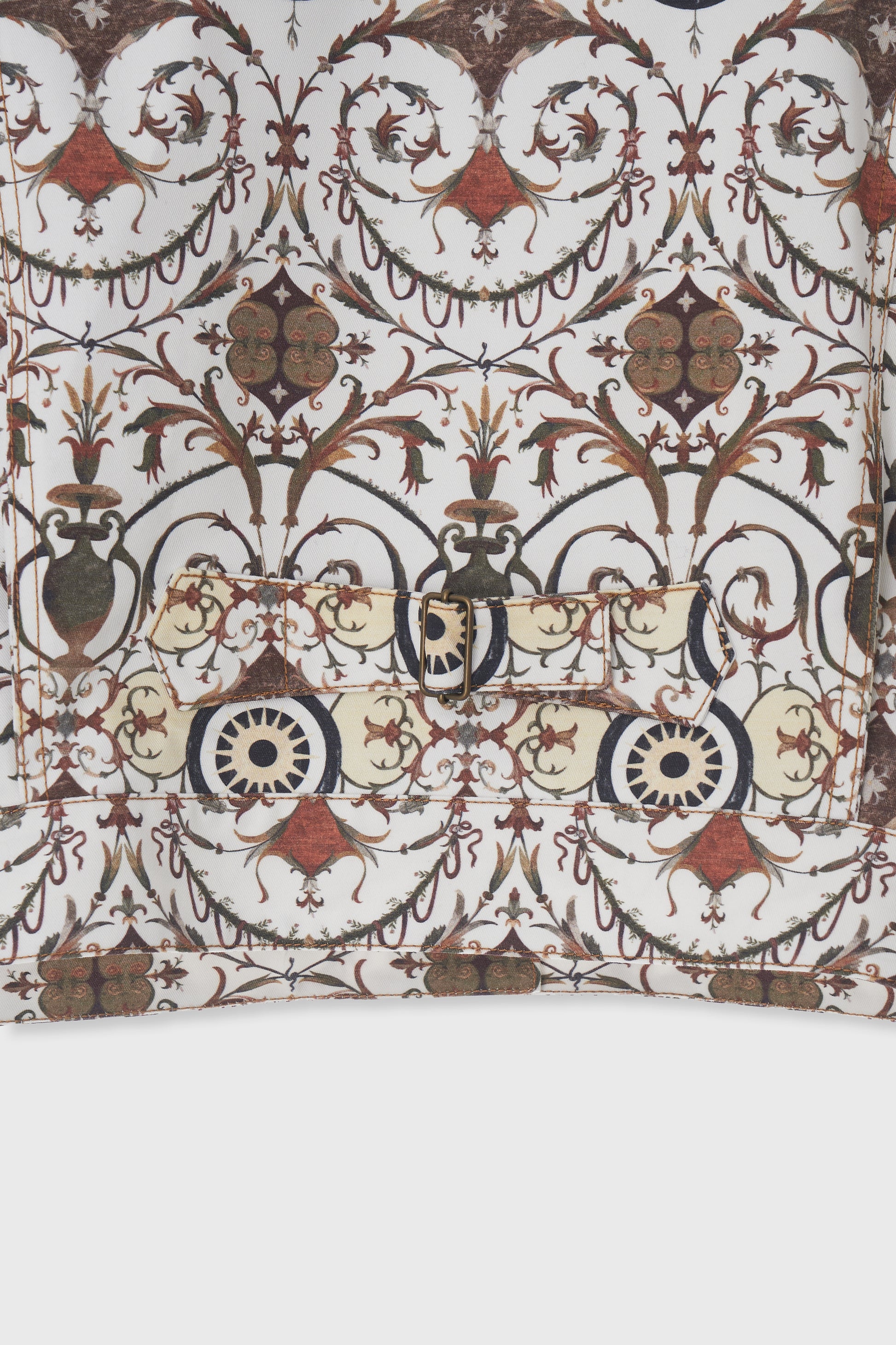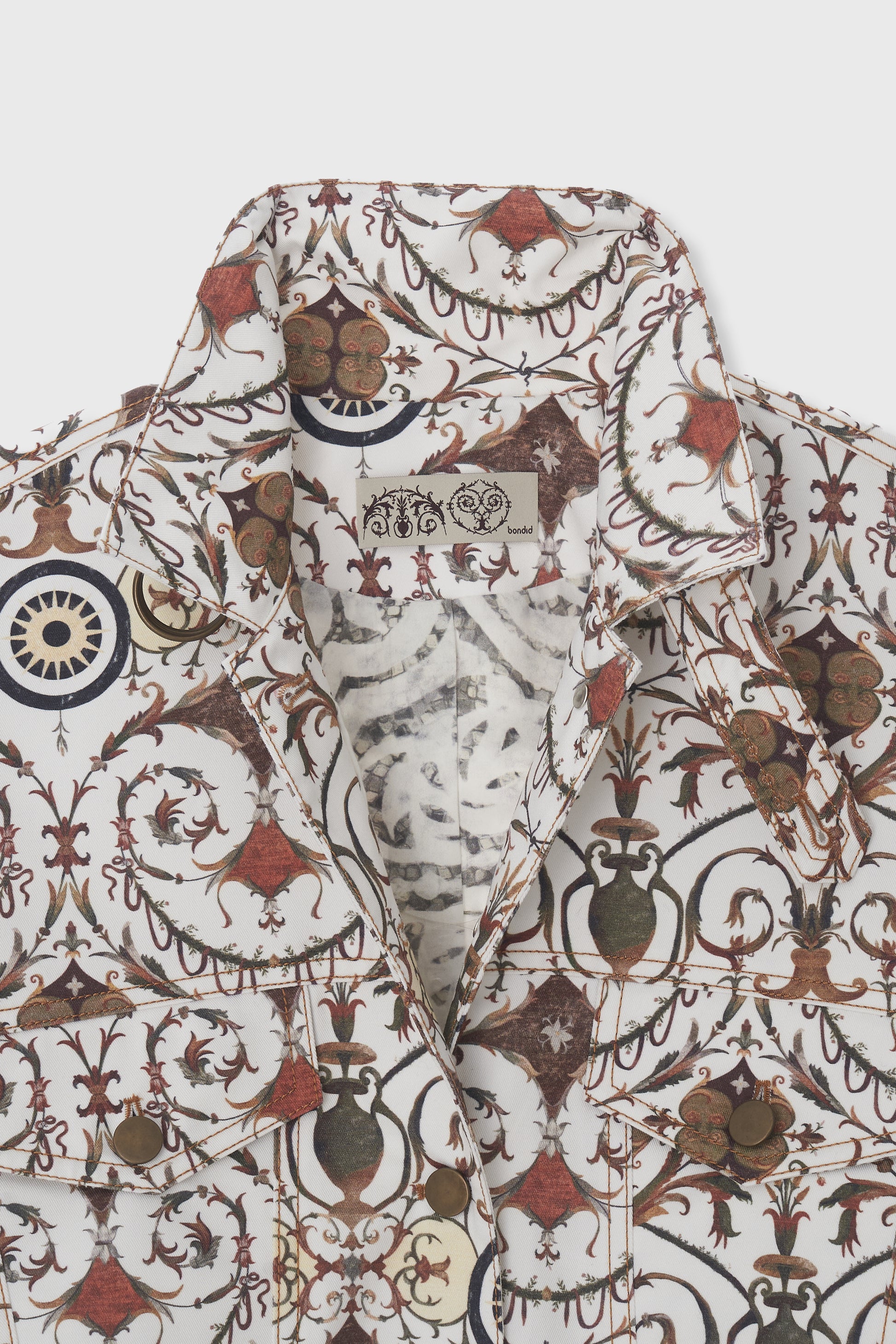 This one-of-a-kind jacket is your next getaway outfit to your favorite coastal city in Italy. The earthy tones and elements from the scenic view will bring you immediate comfort and personality when you wear it. The abstract print, which resembles a face, will make you smile and spark beautiful conversations with people you encounter during your trip.