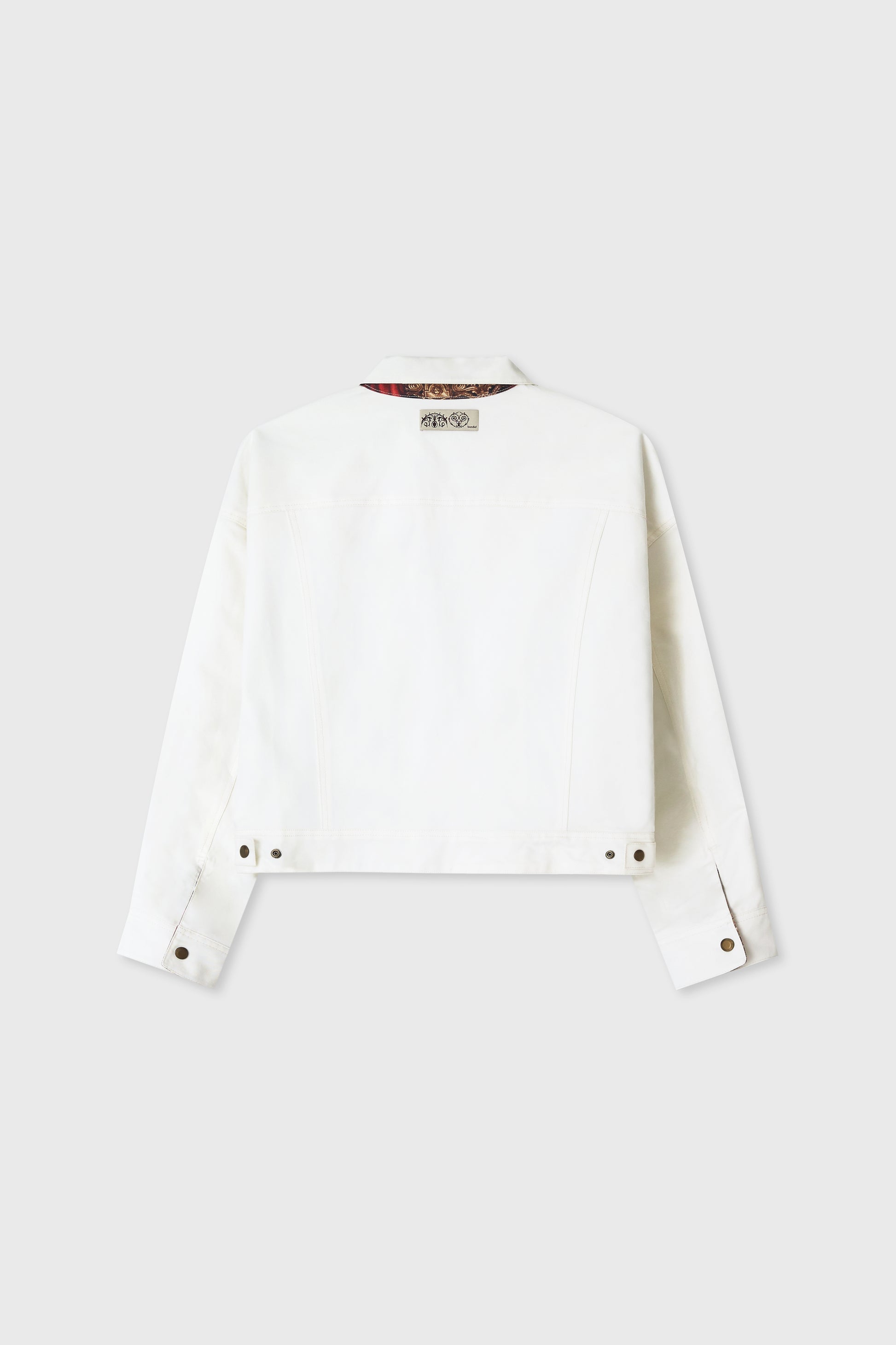 The timeless Dante jacket has been modernized with classic style full-length sleeves. With a reversible design crafted from top-quality organic cotton twill, the new Dante jacket still maintains its versatility. Opt for a refined appearance with the sleek white side, or switch things up with the vibrant printed side for a touch of playfulness.
